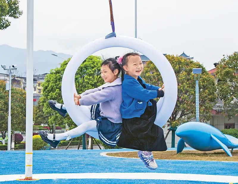 加强财会监督,有利于保障财政资金持续增进民生福祉,促进基本公共服务均等化。湖北省恩施土家族苗族自治州恩施市把临近小区周边的一些闲置、边角地块打造成一个个功能完备的公园绿地,免费向市民开放。图为2023年4月10日,小朋友在恩施市城区改造升级后的耿家坪公园里愉快地玩耍,乐享春日美好时光。 人民图片 谭华/摄